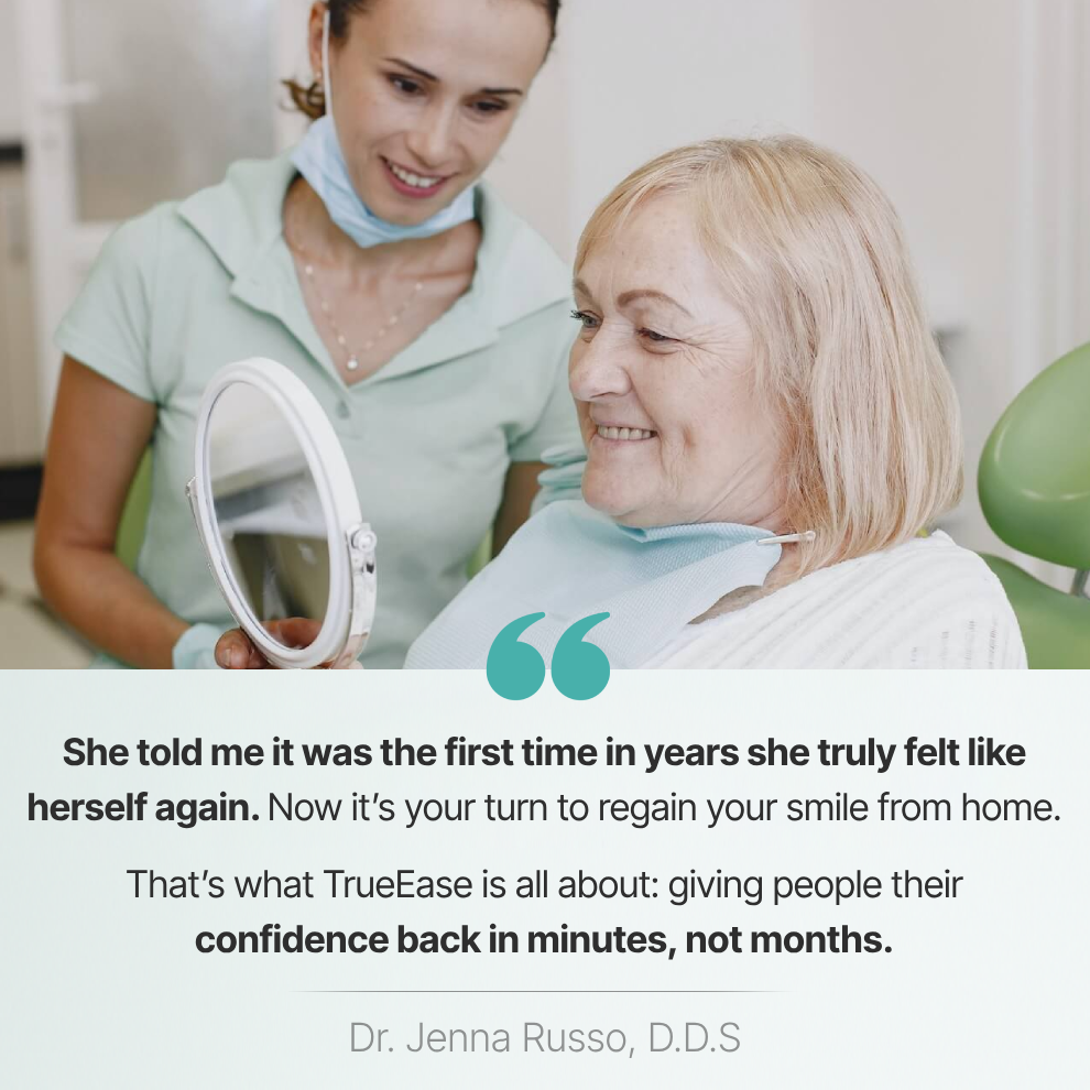 TrueEase™ makes it simple to smile again, comfortable, secure, and backed by real support.